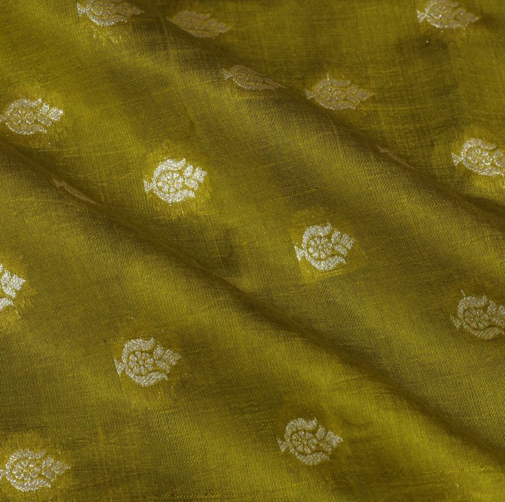 Banarasi Chiniya Silk Lemon Green/ Pure Banarasi fabrics