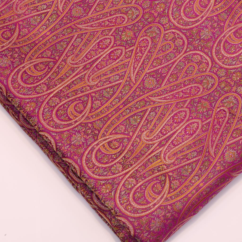 Exquisitely woven in Banaras, this pure Jamawar fabric features intricate, all-over traditional motifs with a rich, regal texture. Known for its luxurious drape and timeless elegance, it is ideal for bridal wear, festive ensembles, and heirloom creations.