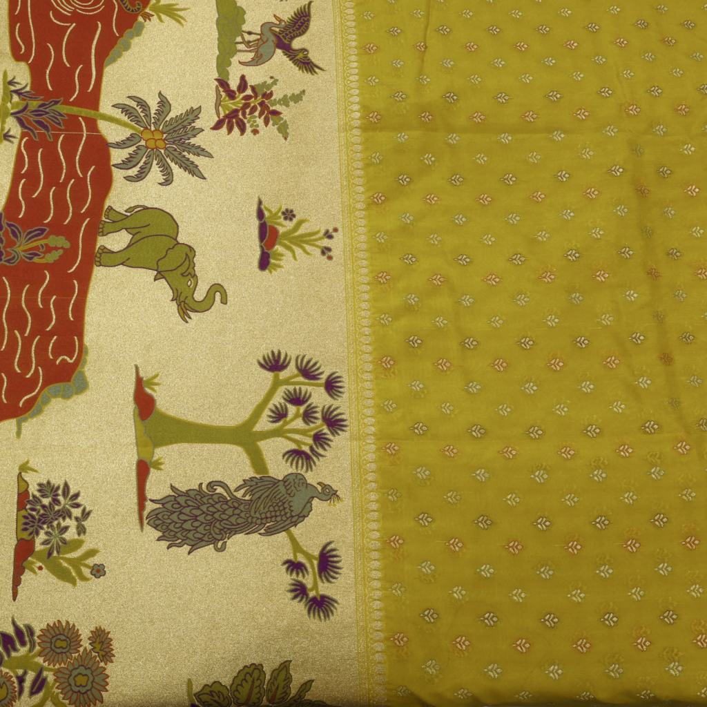 Elegant silk fabric featuring delicate Banarasi butti work paired with a rich Paithani daman, creating a beautiful fusion of classic weaves and regal detailing. Luxurious in texture with a graceful drape, it is ideal for premium sarees and refined festive ensembles.