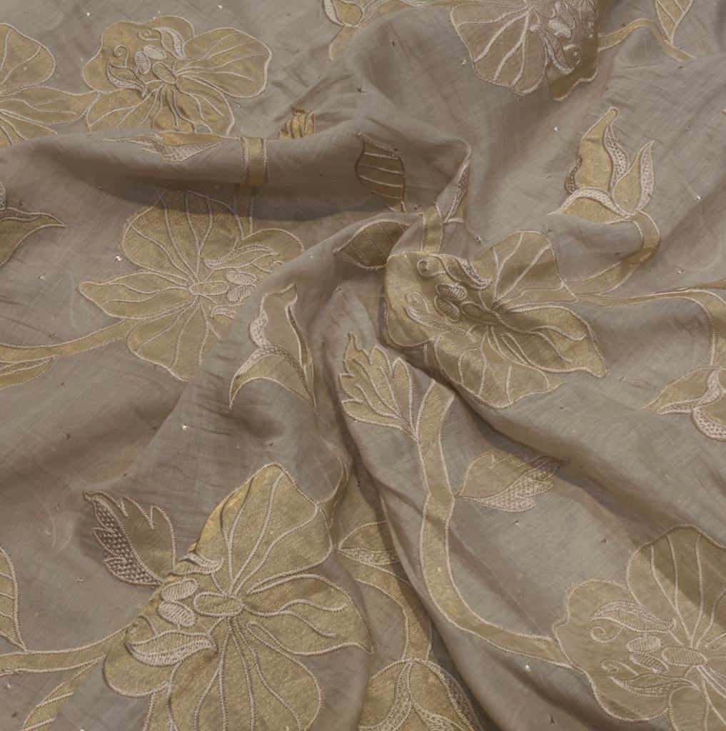 Chanderi applique work fabric Banarasi Work
