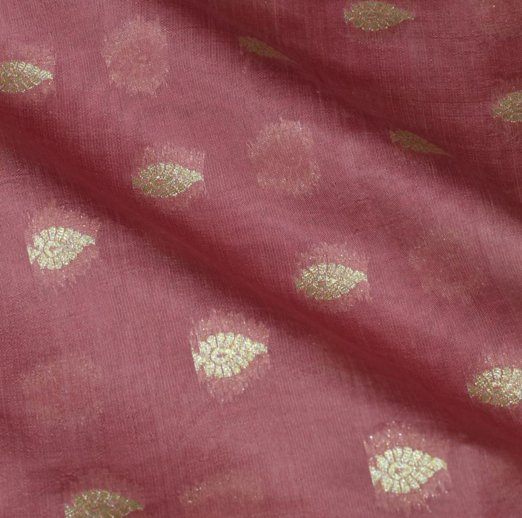 Chiniya Silk Fabric With Golden Banarasi Butti Rose Pink/ Pure Banarasi fabrics