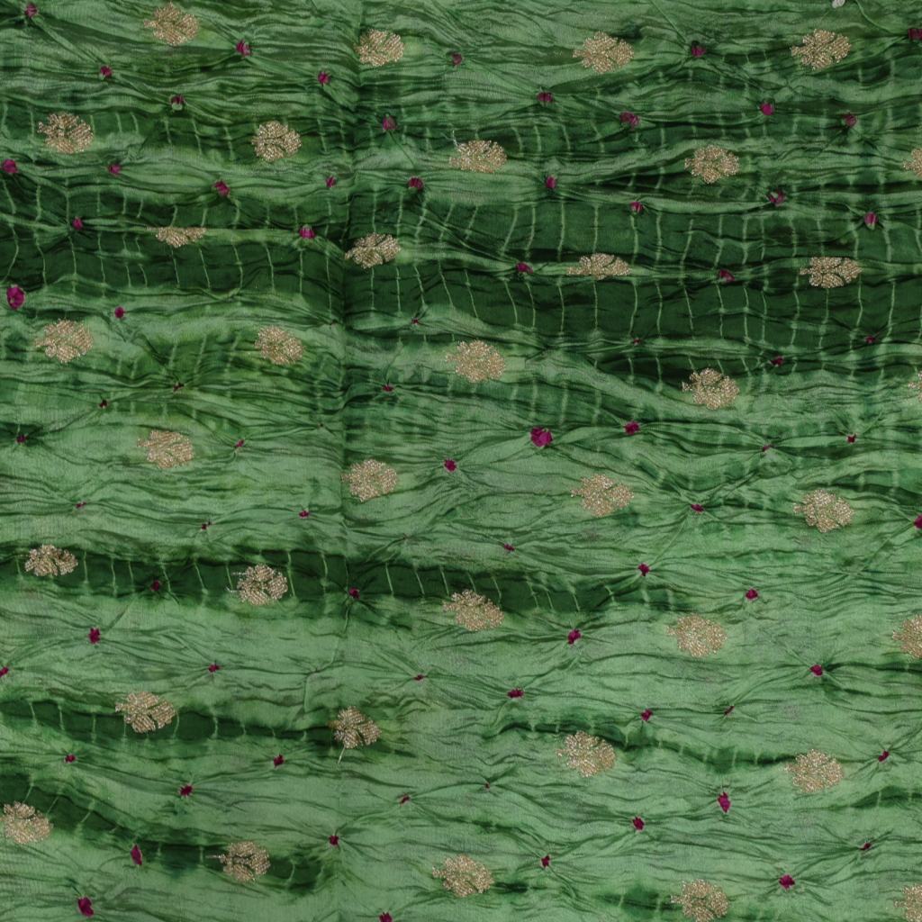 Chiniya silk bandhej with shibori and handwoven golden Banarasi butti - Green/ Banarasi Bandhej