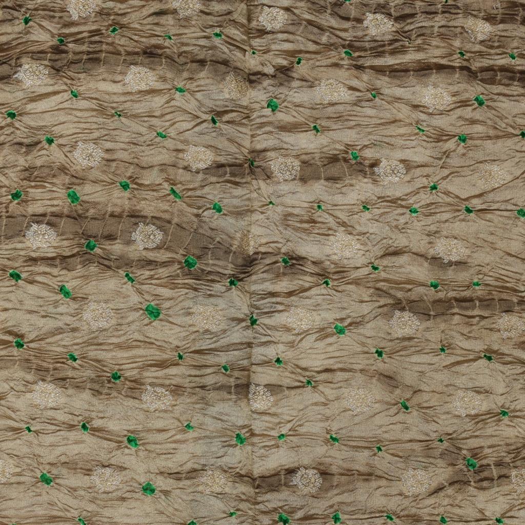 Chiniya silk bandhej with shibori and handwoven golden Banarasi butti - Beiege/ Banarasi Bandhej