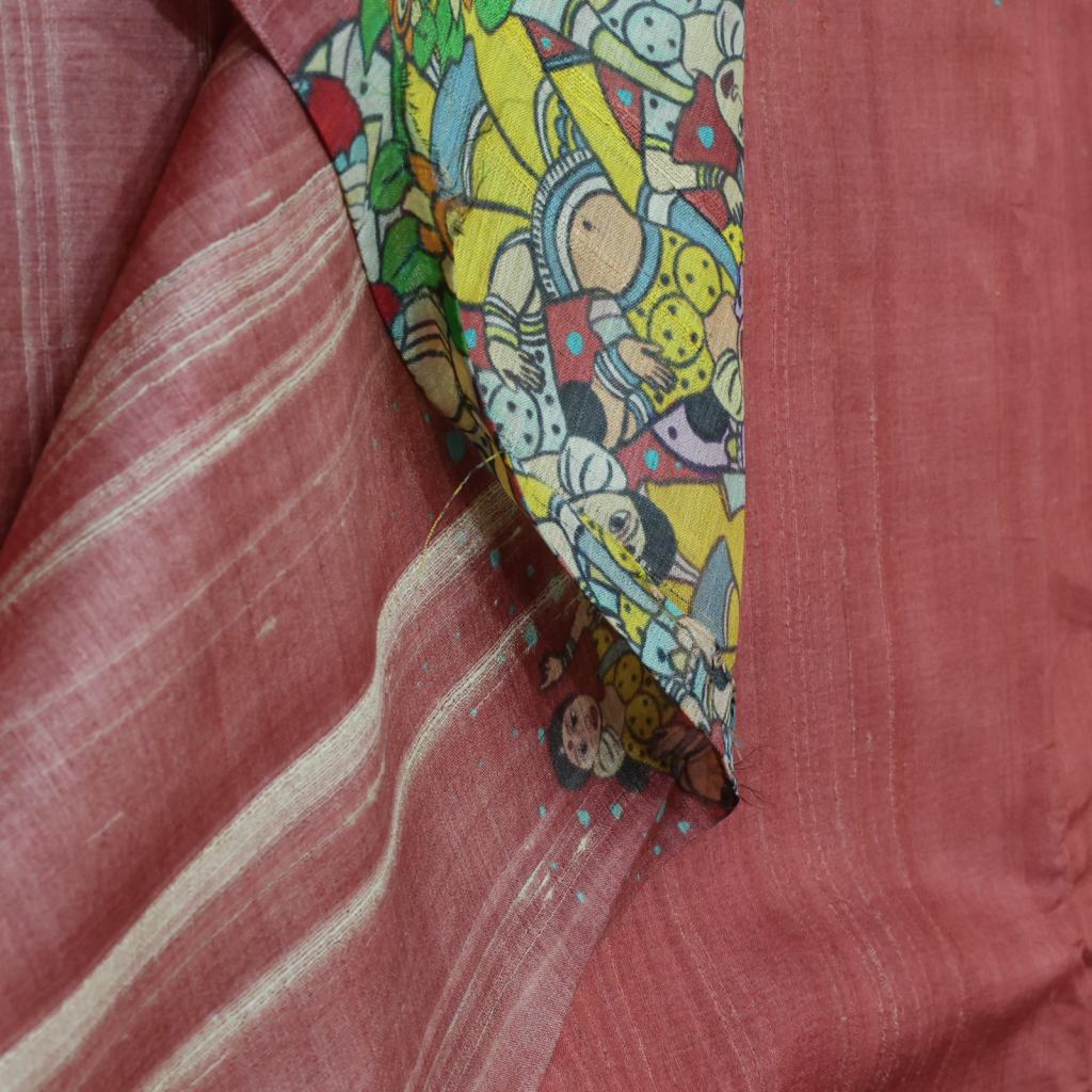 Handpainted kalamkari daman on pure tassar silk fabric Printed Silk fabrics
