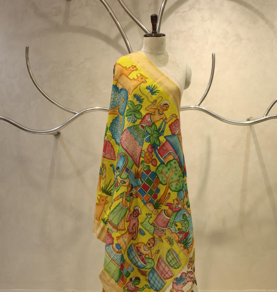 Handpainted Kalamkari Dupatta – A timeless piece of art, each dupatta is beautifully handpainted by skilled artisans using natural dyes. The intricate motifs and detailed brushwork reflect India’s rich heritage and craftsmanship. Lightweight, elegant, and versatile — perfect to elevate any ethnic or contemporary ensemble.