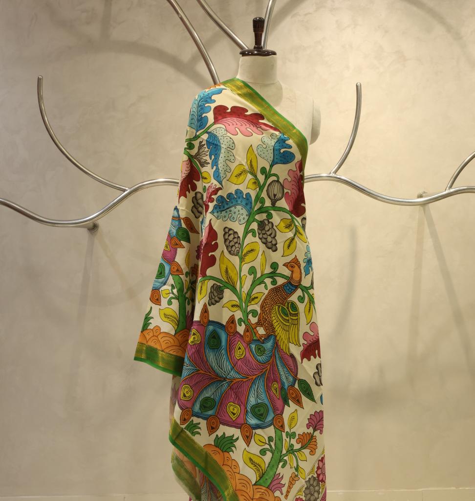 Handpainted Kalamkari Dupatta – A timeless piece of art, each dupatta is beautifully handpainted by skilled artisans using natural dyes. The intricate motifs and detailed brushwork reflect India’s rich heritage and craftsmanship. Lightweight, elegant, and versatile — perfect to elevate any ethnic or contemporary ensemble.