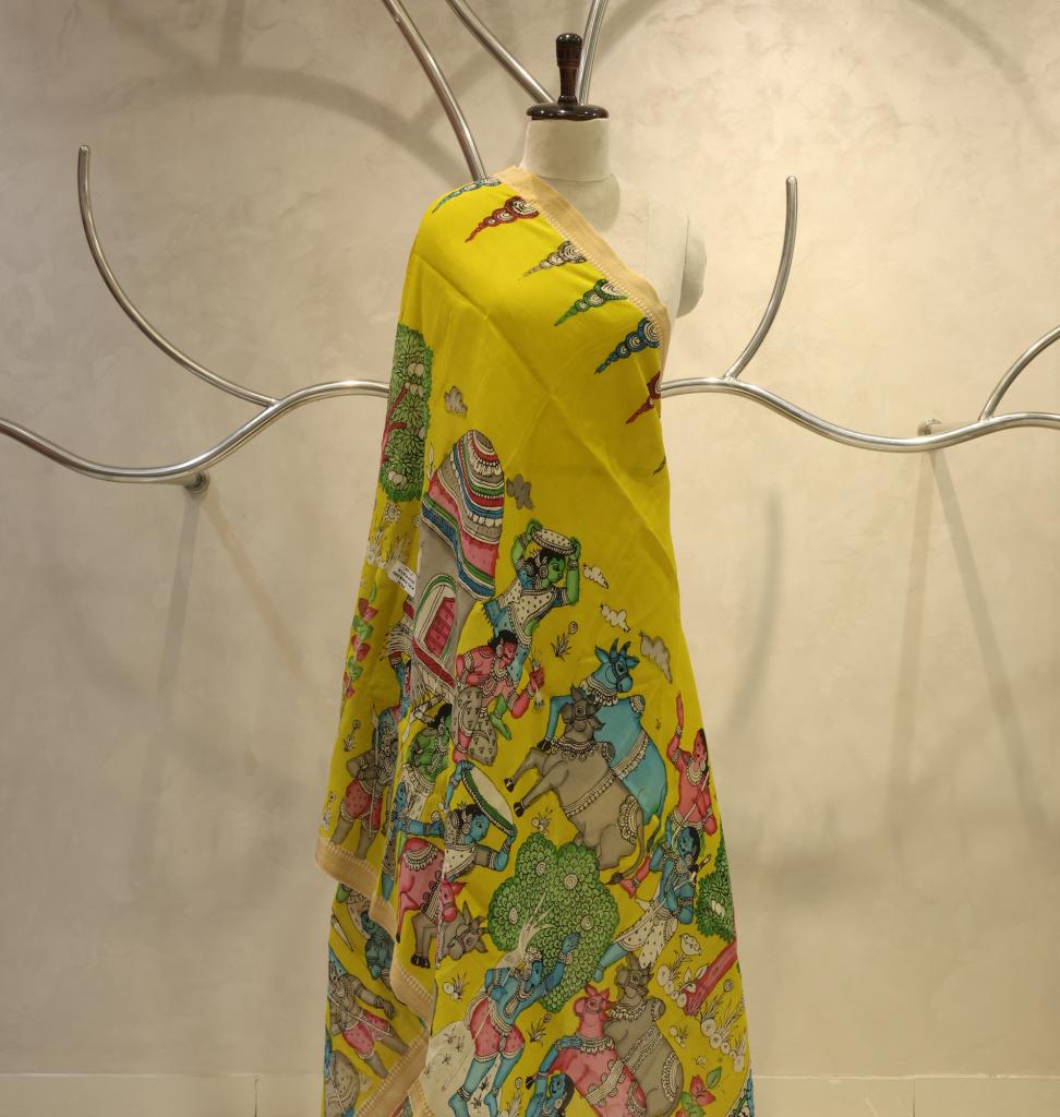 Handpainted Kalamkari Dupatta – A timeless piece of art, each dupatta is beautifully handpainted by skilled artisans using natural dyes. The intricate motifs and detailed brushwork reflect India’s rich heritage and craftsmanship. Lightweight, elegant, and versatile — perfect to elevate any ethnic or contemporary ensemble.