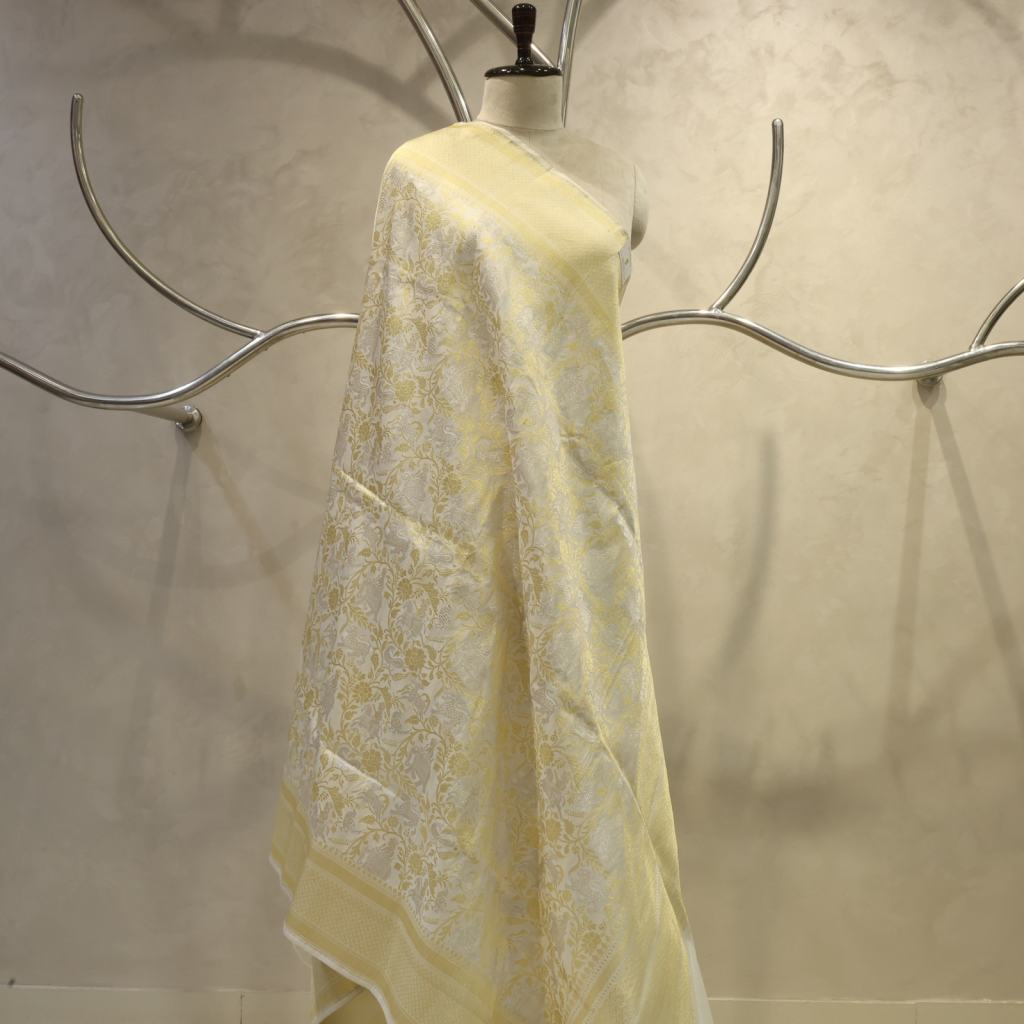 Luxurious Katan Silk Dupatta featuring classic Banarasi work, known for its rich texture and timeless elegance. An ideal accent for festive and wedding wear.