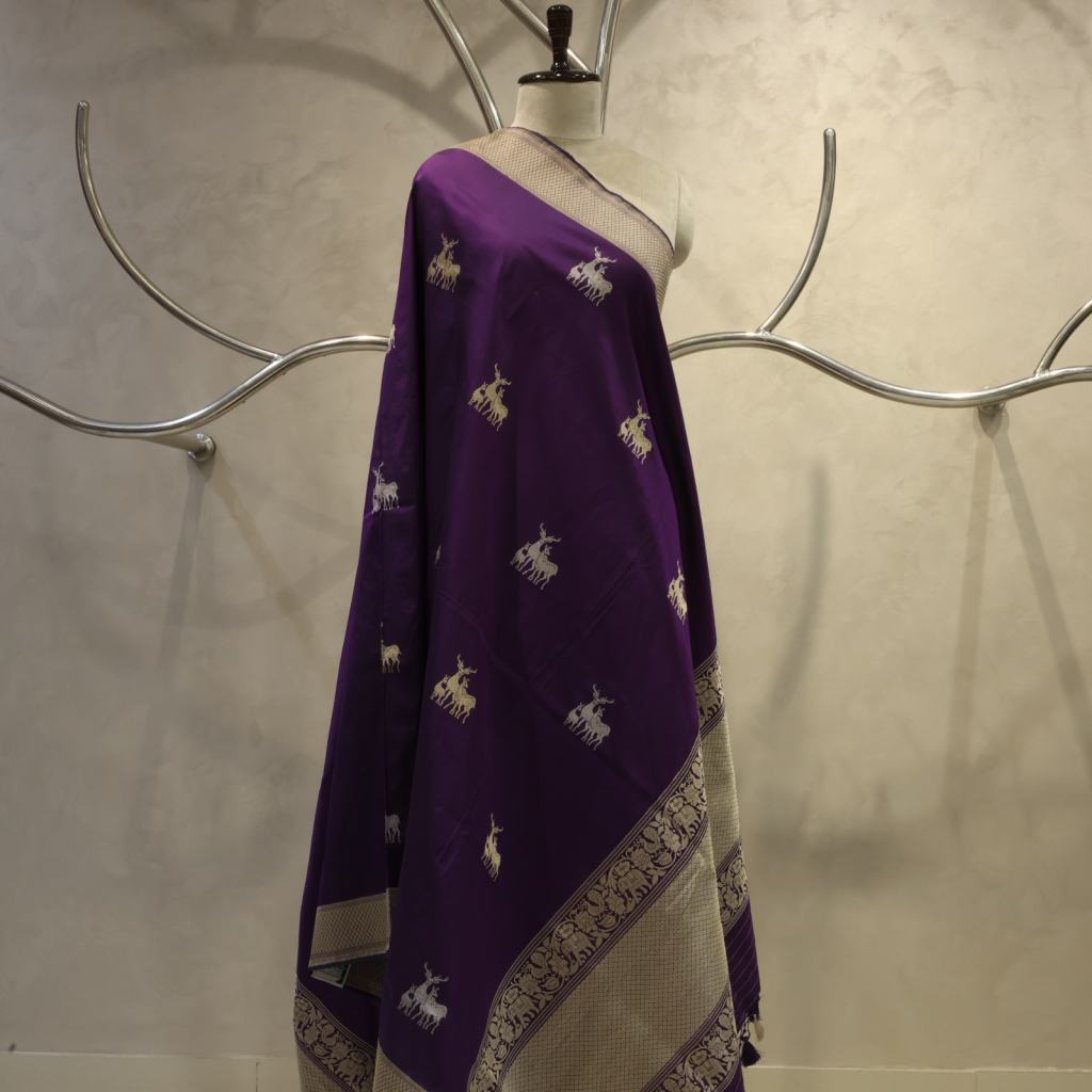 Luxurious Katan Silk Dupatta featuring classic Banarasi work, known for its rich texture and timeless elegance. An ideal accent for festive and wedding wear.