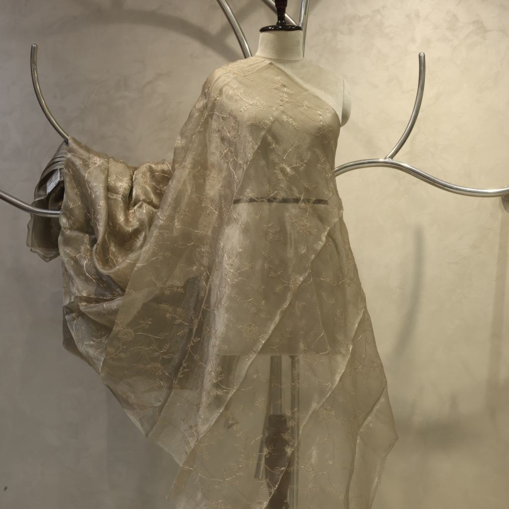 Premium Kora Silk Fabric featuring exquisite jaal embroidery work, offering a graceful texture and refined elegance ideal for festive and occasion wear creations.
