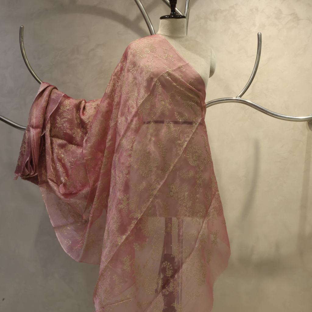 Premium Kora Silk Fabric featuring exquisite jaal embroidery work, offering a graceful texture and refined elegance ideal for festive and occasion wear creations.