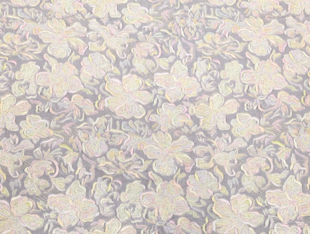 Printed munga silk embroidery fabric - Grey/ Banarasi Work