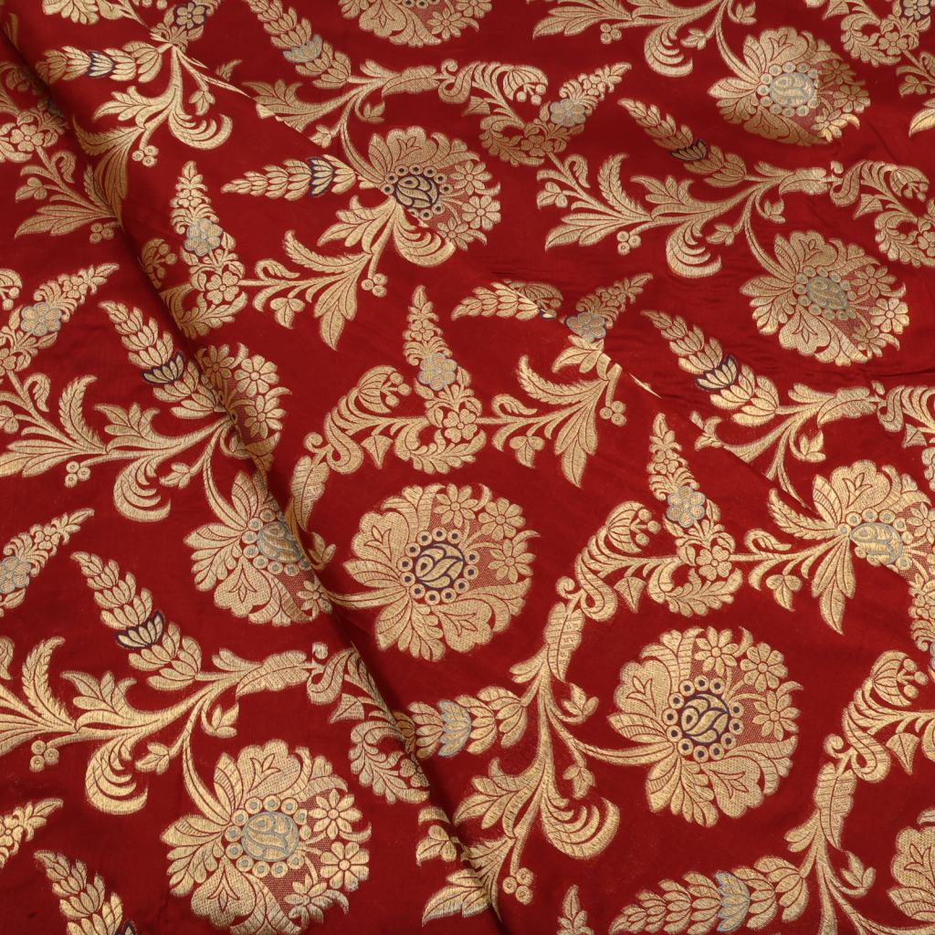 Exquisite and luxurious, this fabric is crafted using age-old weaving techniques in Varanasi, India. Featuring intricate patterns and motifs woven with gold and silver zari threads, it embodies timeless elegance and is perfect for creating opulent sarees, lehengas, and other ethnic wear.