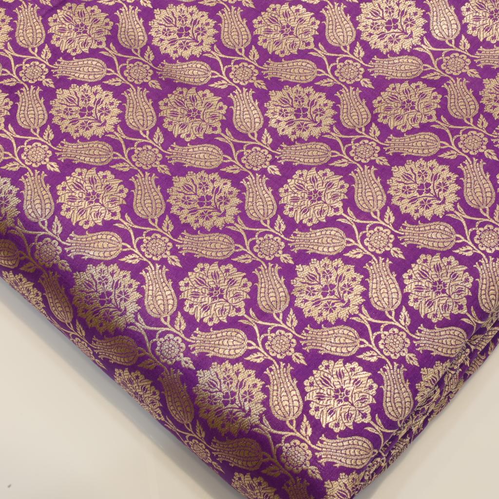 Exquisite and luxurious, this fabric is crafted using age-old weaving techniques in Varanasi, India. Featuring intricate patterns and motifs woven with gold and silver zari threads, it embodies timeless elegance and is perfect for creating opulent sarees, lehengas, and other ethnic wear.