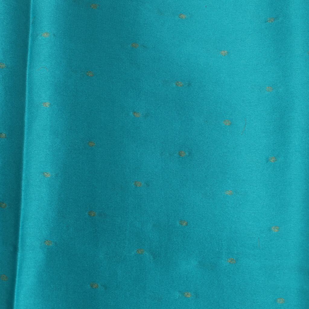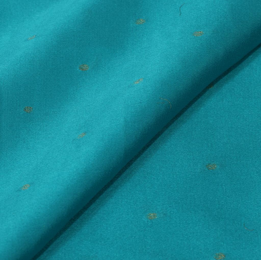 Resham Crepe With Golden Dots Motif & Golden Banarasi Border Aqua Blue/ Pure Banarasi fabrics