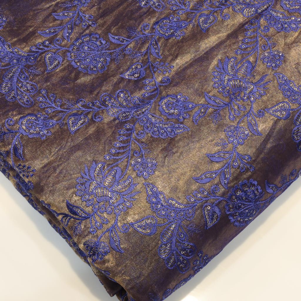 Tissue fabric with beautiful resham embroidery work, lightweight, luminous, and ideal for festive outfits and elegant drapes.